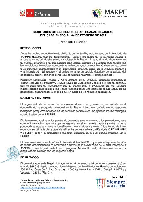 MONITOREO DE LA PESQUERÍA ARTESANAL REGIONAL DEL 31 DE ENERO AL 04 DE FEBRERO DE 2022