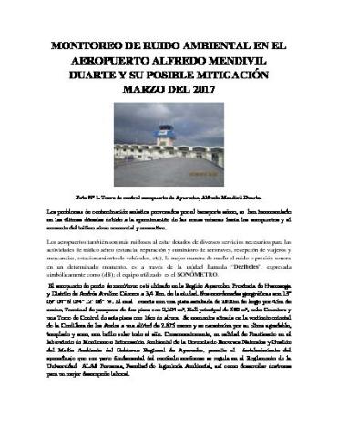 Monitoreo de ruido ambiental en el aeropuerto alfredo mendivil duarte y su posible mitigacion marzo del 2017