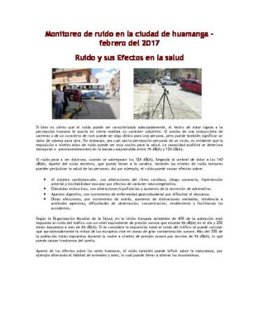 Documento que registra la información de monitore de ruido ambiental en la ciudad de ayacucho en el mes de febrero y sus consecuencias en la salud de la población.