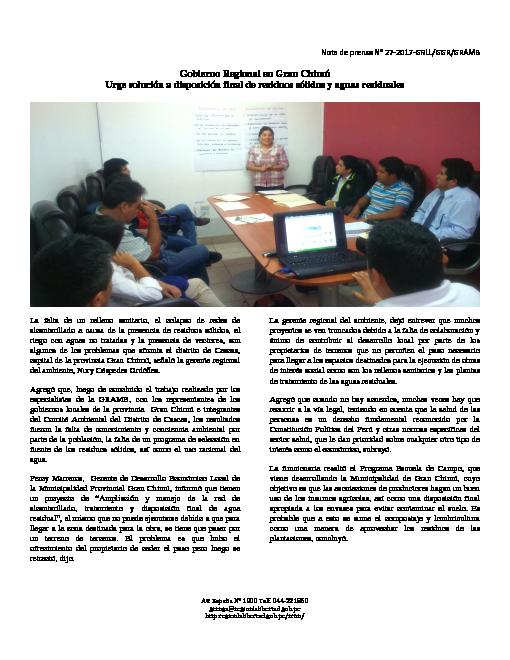 Nota de prensa N° 27 En Gran Chimú Urge Solución a Disposición Final de Residuos Sólidos y Aguas Residuales