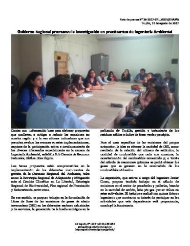 Nota de prensa N° 38 Gobierno Regional promueve la investigación en practicantes de Ingeniería Ambiental