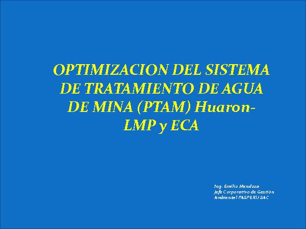 Optimización del sistema de tratamiento de agua de mina (PTAM) Huaron-LMP y ECA