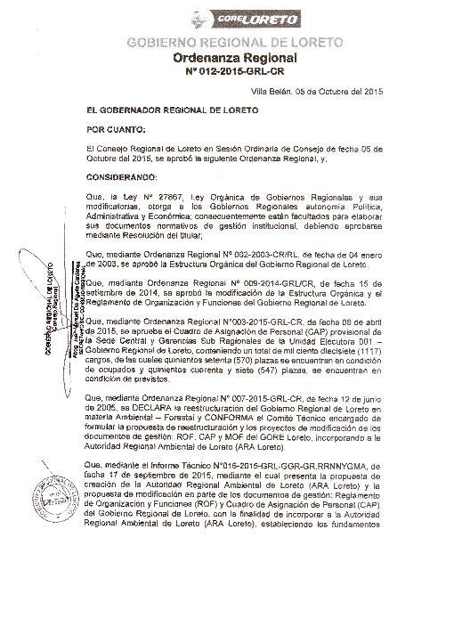 Ordenanza Regional 012-2015-GRL-CR - Creacion de la Autoridad Regional Ambiental