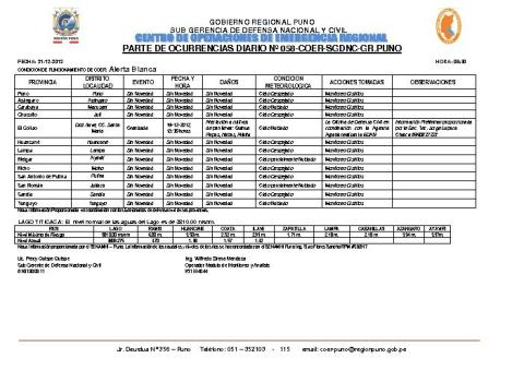 PARTE DE OCURRENCIAS DIARIO Nº 058 - CENTRO DE EMERGENCIAS REGIONALES