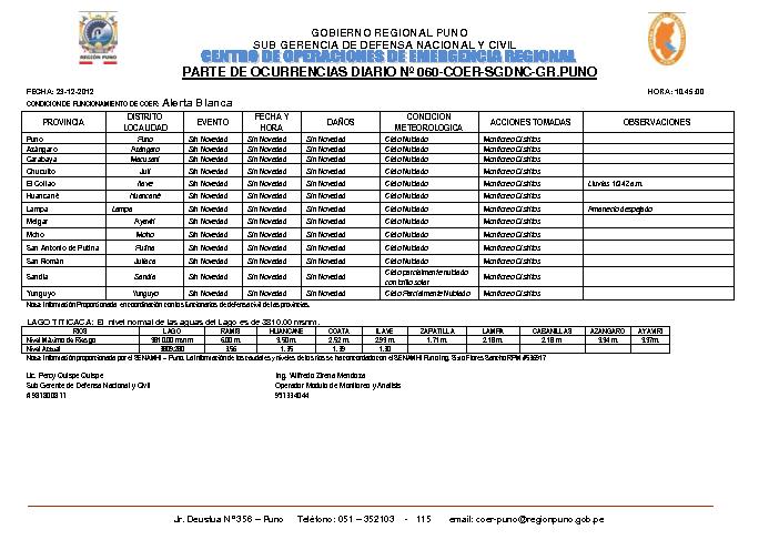 PARTE DE OCURRENCIAS DIARIO Nº 060-CENTRO DE OPERACIONES DE EMERGENCIA REGIONAL