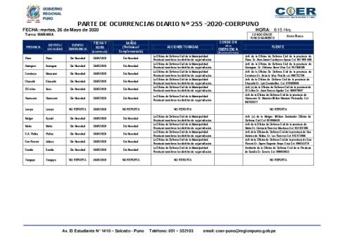 PARTE DE OCURRENCIAS DIARIO Nº 255 -2020-COERPUNO