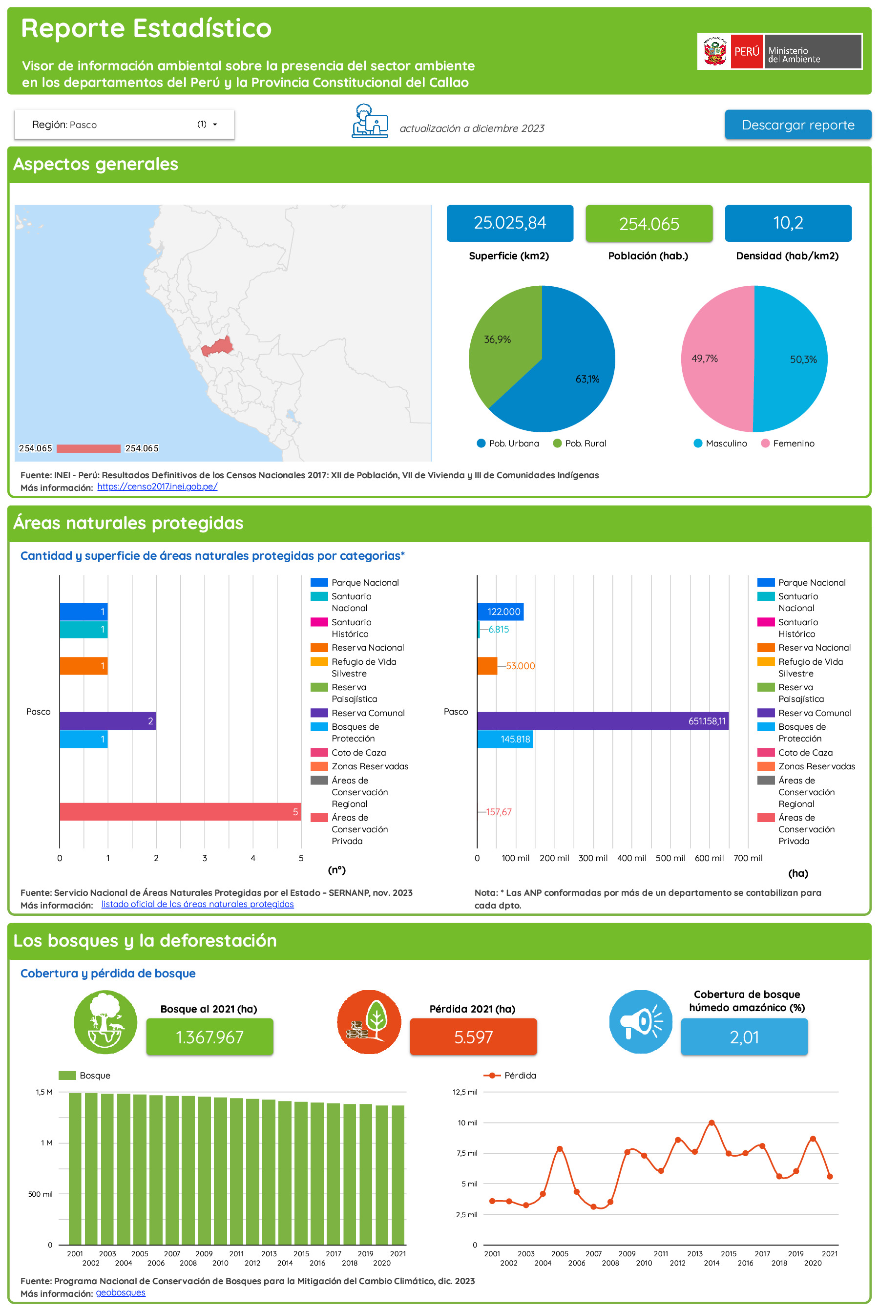 Pasco, Reporte Estadístico Departamental, diciembre 2023