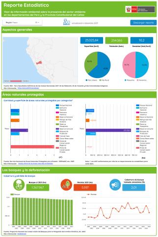 Los reportes estadísticos ambientales departamentales (Dossiers) son documentos de síntesis que contienen datos generales, así como la información estadística más importante sobre la presencia del sector ambiente en los departamentos del Perú, con la finalidad de servir como una herramienta que brinda información de calidad, oportuna y clara sobre el estado del ambiente y los recursos naturales con la finalidad que puedan ser utilizados en los procesos de gestión ambiental y alertar sobre posibles problemas ambientales.
