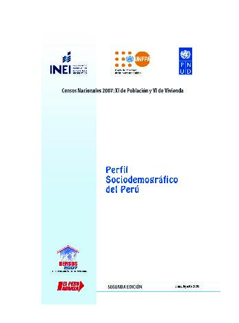Continuando con la difusión de los resultados censales, en esta oportunidad, el INEI pone a disposición de los usuarios la segunda edición del documento: PERFIL SOCIODEMOGRÁFICO DEL PERÚ, que contiene los resultados de las principales características demográficas, sociales y económicas del país.
