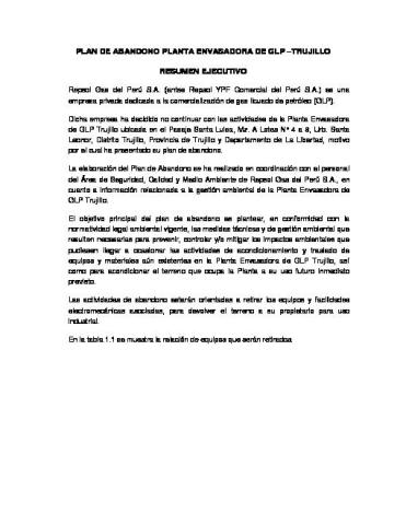 Plan de abandono de la planta envasadora de GLP - Trujillo de la empresa Repsol Gas del Perú S.A.
