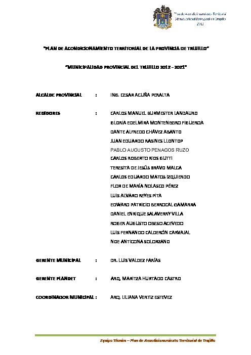Plan de Acondicionamiento Territorial de la Provincia de Trujillo, 2012-2021