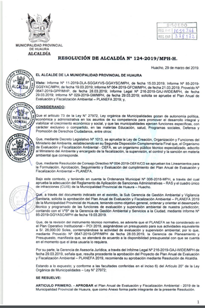 Plan Anual de Evaluación y Fiscalización Ambiental (PLANEFA 2019) de la Municipalidad Provincial de Huaura- Huacho, se constituye en un instrumento de planificación que contempla acciones para la evaluación de la calidad ambiental, la supervisión de los administrados y el ejercicio de la potestad sancionadora destinadas a asegurar el cumplimiento de las obligaciones ambientales fiscalizables establecidas en la legislación ambiental vigente.