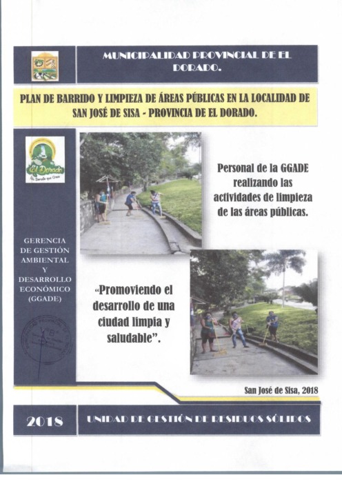 Plan de Barrido y Limpieza de Áreas Públicas en la Localidad de san José de Sisa - Provincia de el Dorado 2018.