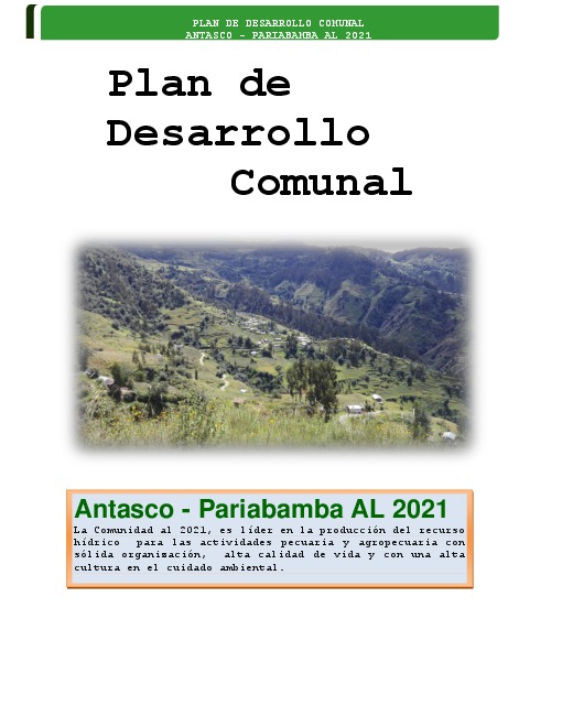 PLAN DE DESARROLLO COMUNAL ANTASCO - PARIABAMBA AL 2021