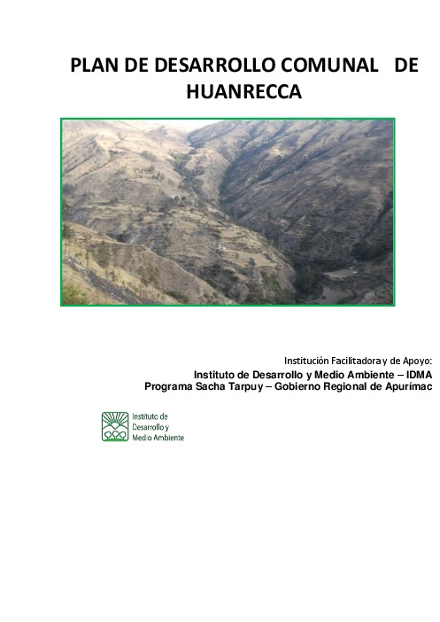 PRESENTACION La construcción participativa del Plan de Desarrollo Concertado Comunal, responde a la necesidad de fortalecer el ejercicio del derecho ciudadano de la participación y control en la gestión pública comunal. El presente documento contiene los acuerdos, de los pobladores hombres y mujeres de la Comunidad de Huanrecca, sobre su visión de desarrollo, sus objetivos estratégicos y sus proyectos prioritarios, que les permitirá construir las bases de un desarrollo sostenible de acuerdo a sus aspiraciones colectivas y de acuerdo a los acuerdos con otras comunidades del Distrito en Procesos tales como la Construcción del Plan de Desarrollo Distrital y Presupuesto Participativo distrital y Provincial