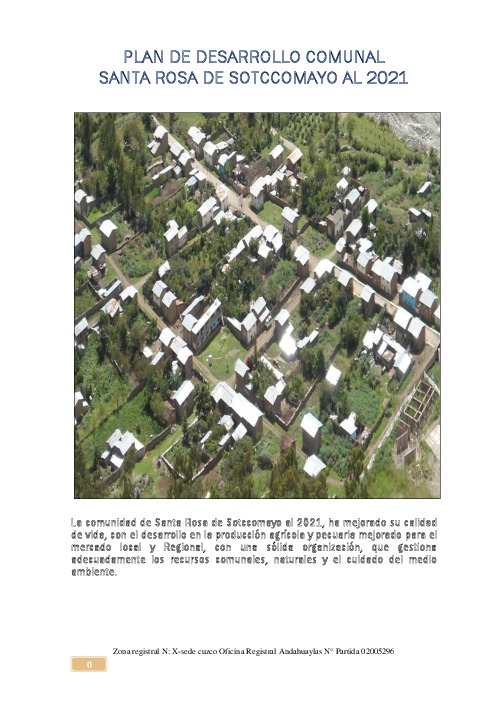 PLAN DE DESARROLLO COMUNAL SANTA ROSA DE SOTCCOMAYO AL 2021 DIST. KISHUARA