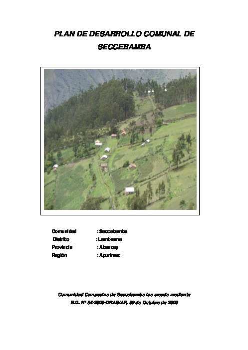 PLAN DE DESARROLLO COMUNAL DE SECCEBAMBA AL 2021 DISTRITO DE LAMBRAMA