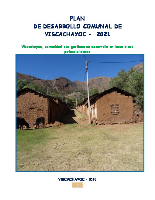 El presente documento, Plan de Desarrollo de la comunidad de Viscachayoc, es el resultado de un conjunto de actividades de campo y gabinete, resaltando una plena participación de los pobladores de la comunidad en este proceso de planificación estratégica.