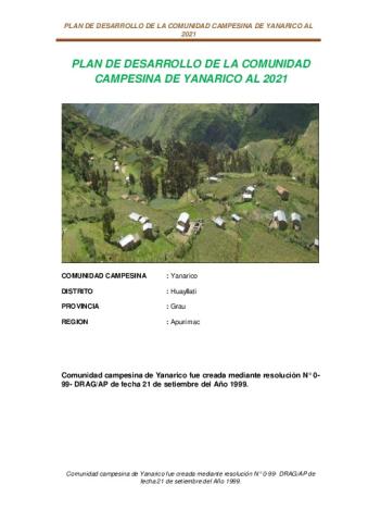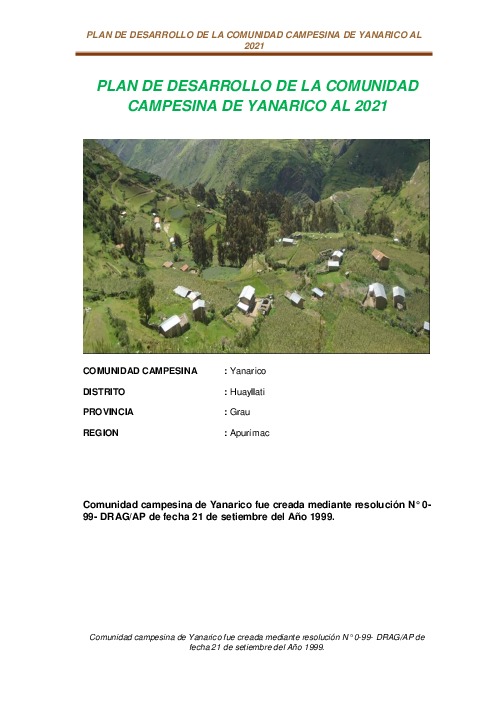 PLAN DE DESARROLLO DE LA COMUNIDAD CAMPESINA DE YANARICO AL 2021