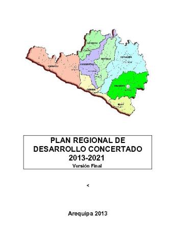 Instrumento de planificacion diseñado por el Gobierno Regional de Arequipa con un horizonte de planificacion de 08 años, el cual tien como como Visión: "Arequipa, es un territorio articulado, culturalmente rico y diverso, ambientalmente sustentable y competitivo, con economía sostenible, que aprovecha responsablemente sus recursos naturales, prioriza la agroindustria, manufactura, minería y turismo, su población es culta, educada, saludable, con empleo digno y seguridad".