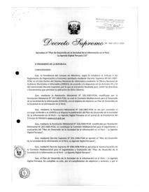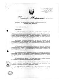 El presente documento contiene la visión y los objetivos estratégicos del Plan para el Desarrollo de la Sociedad de la Informacion y el Conocimiento, Agenda Digital 2.0, que tiene como objetivo general, permitir que la sociedad peruana acceda a los beneficios que brinda el desarrollo de las tecnologías de la información y comunicación en todos sus aspectos.
