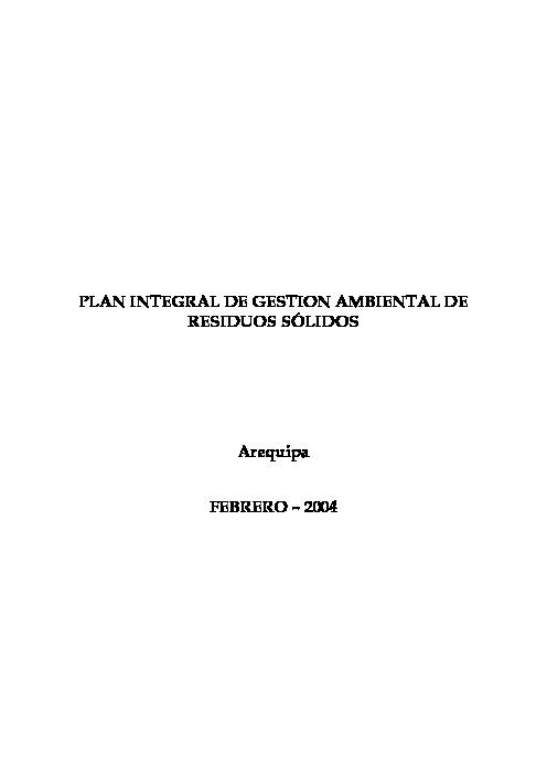 Plan Integral de Gestión Ambiental de Residuos Sólidos Arequipa Febrero 2004