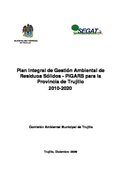 Plan Integral de Gestión Ambiental de Residuos Sólidos - PIGARS para la Provincia de Trujillo 2010-2020