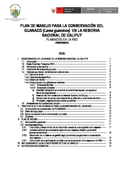 Plan de Manejo para la Conservación del Guánaco en la reserva Nacional de Calipuy, departamento de La Libertad