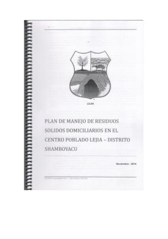 Plan de Manejo de Residuos Sólidos en el Centro Poblado Lejía - Distrito de Shamboyacu.