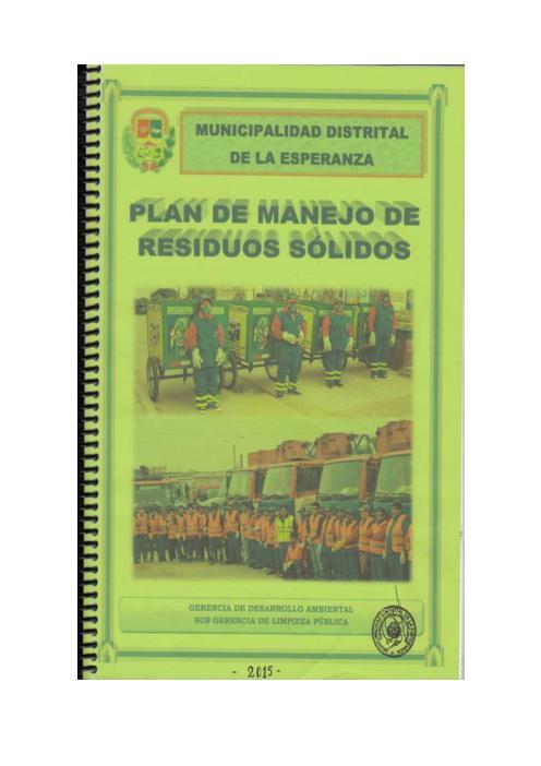 Plan de Manejo de residuos sólidos de la Municipalidad Distrital de La Esperanza 2015-2021