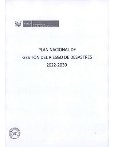 Plan Nacional de Gestión del Riesgo de Desastres 2022 - 2030