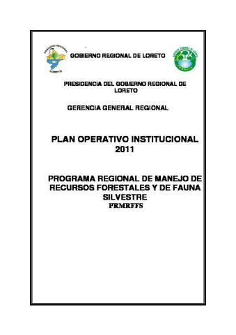 PLAN OPERATIVO INSTITUCIONAL 2011 DEL PROGRAMA REGIONAL DE MANEJO DE RECURSOS FORESTALES Y DE FAUNA SILVESTRE PRMRFFS