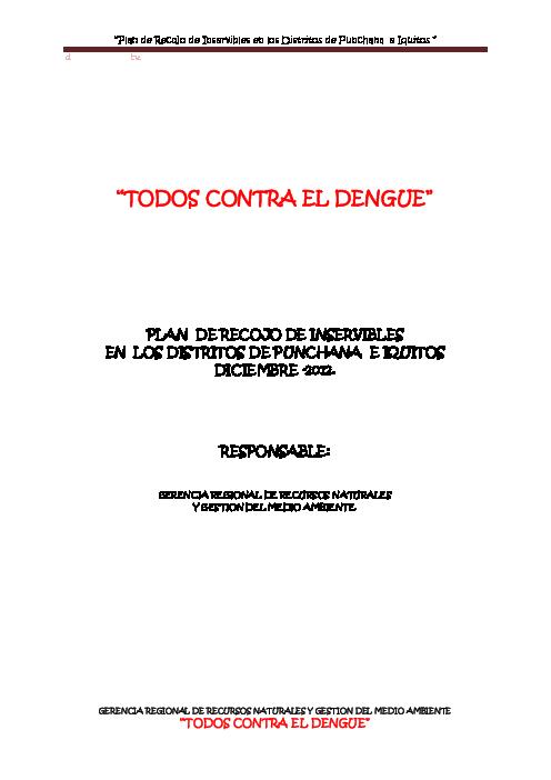 PLAN DE RECOJO DE INSERVIBLES EN LOS DISTRITOS DE PUNCHANA E IQUITOS DICIEMBRE -2012.