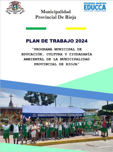 En el marco del cumplimiento de las normativas nacionales ambientales, la Municipalidad Provincial de Rioja, asume el compromiso de dar respuesta a problemas socio-ambientales de la localidad, a través de la educación ambiental con la participación activa de la ciudadanía. El Plan de Trabajo EDUCCA 2024, resulta fundamental para fomentar los conocimientos, habilidades y prácticas necesarias en la concientización ambiental de la población.