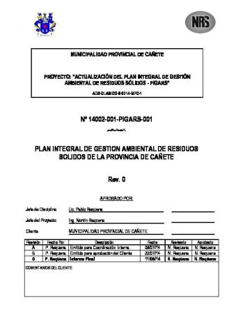 Planes Integrales de Gestion Ambiental de los Residuos Solidos en la Region Lima