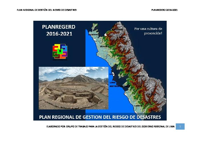 El Plan de Gestión del Riesgo de Desastres de la Región Lima (PLANREGERD 2016-2021), constituye una primera aproximación a la construcción de una propuesta participativa para enfrentar la problemática del riesgo de desastres, en el ámbito territorial bajo su jurisdicción y en el marco legal vigente. Intenta abordar desde una perspectiva integral, el análisis de los peligros, vulnerabilidad y riesgos de la población, asentada en sus nueve provincias, 128 distritos y 7,793 centros poblados; así como de los recursos y bienes materiales, con los que cuenta la región, para promover un desarrollo sustentable.