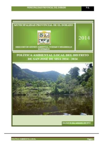 Política Ambiental Local de la Provincia de El Dorado 2014 - 2024