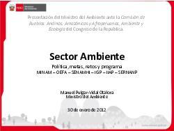 Presentación del Ministro del Ambiente ante la Comisión de Pueblos Andinos, Amazónicos y Afroperuanos, Ambiente y Ecología del Congreso de la República.