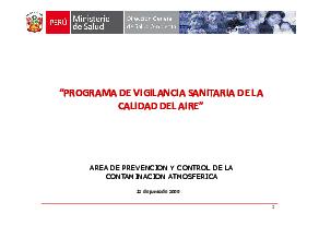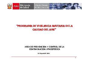Presentación desarrollada por el Área de Prevención y Control de la Contaminación Amtosférica. El Objetivo del programa de vigilancia de la calidad del aire es evaluar el estado de la calidad del aire, con el fin de cuantificar el riesgo a la salud e implementar medidas de solución pertinentes.