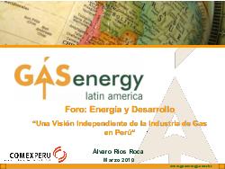 Exposición realizada por el Señor Álvaro Ríos Roca; Director - GAS ENERGY LATIN AMERICAN, durante el Foro: ENERGÍA Y DESARROLLO, realizado el dia 24 de Marzo de 2010, en las instalaciones del Miraflores Park Hotel.