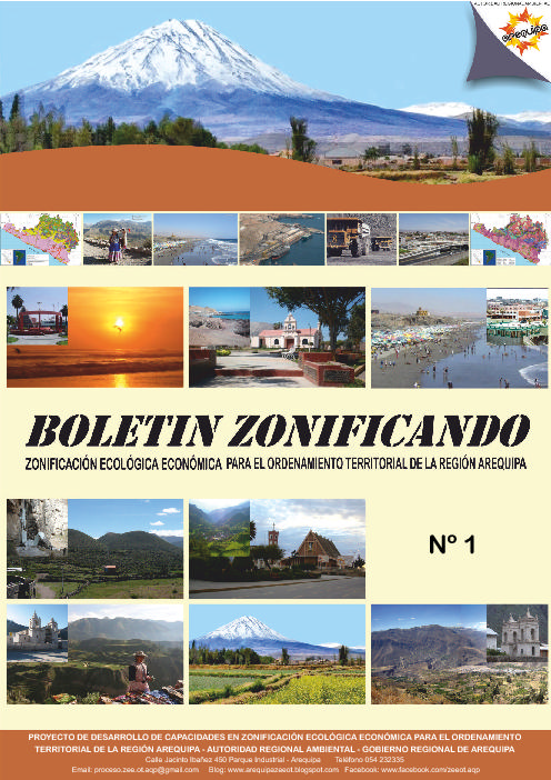 Primer Boletín Zonificando (Zonificación Ecológica Económica para el ordenamiento territorial de la Región de Arequipa). Boletín introductorio en el que se explican cuales son los objetivos y principales actividades de este proyecto.