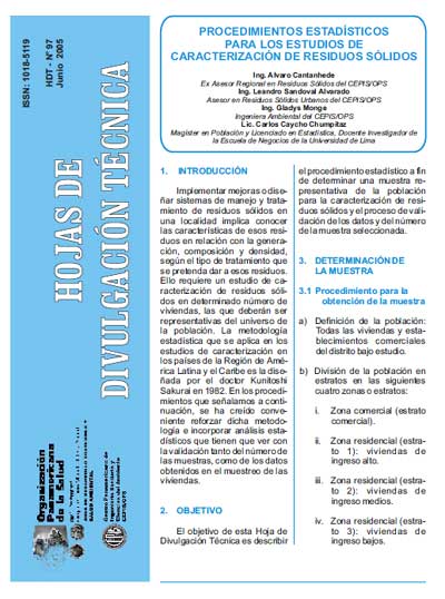 Procedimientos estadísticos para los estudios de caracterización de residuos sólidos, HDT - Nº 97