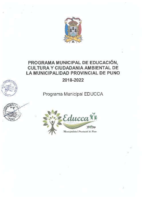 El Programa Municipal de Educación, Cultura y Ciudadanía Ambiental (Programa Municipal EDUCCA) es el instrumento de planificación y gestión de la Muncipalidad Provincial de Puno (Aprobada por Ordenanza Municipal N°020-2018-MPP), para la implementación de la Política Nacional de Educación Ambiental y el cumplimiento de metas del Plan Nacional de Educación Ambiental 2017-2022.