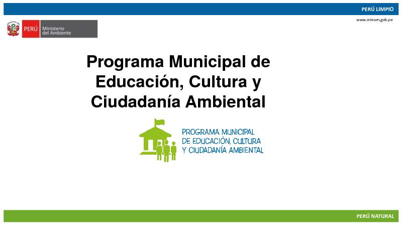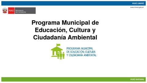 El “Programa Municipal EDUCCA” es un instrumento de planificación y gestión a cargo por los Gobiernos Locales para la implementación de la Política Nacional de Educación Ambiental y el Plan Nacional de Educación Ambiental (aprobado mediante Decreto Supremo-N°016-2016-MINEDU).