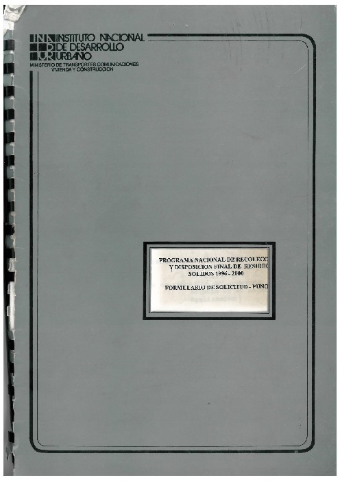 PROGRAMA NACIONAL DE RECOLECCIÓN DISPOSICIÓN FINAL DE RESIDUOS SÓLIDOS - PUNO -1997