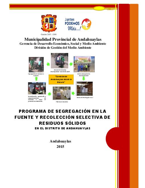 Programa de segregación en la fuente y recolección selectiva de residuos sólidos en el distrito de Andahuaylas 2015