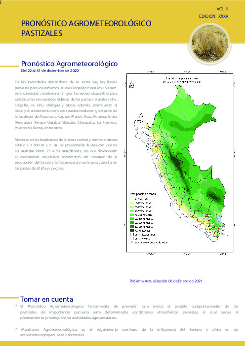 Pronóstico Agrometeorológico, Del 22 al 31 de diciembre de 2020