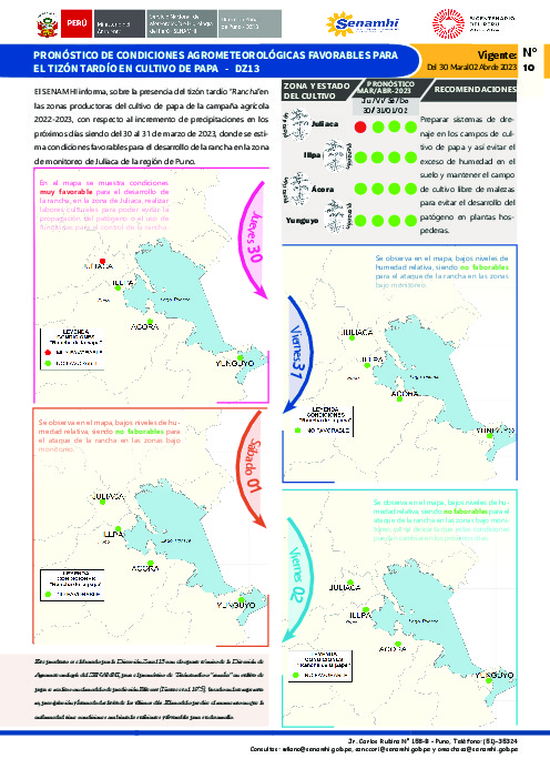 "Pronóstico de condiciones agrometeorológicas favorables al Tizón tardío en el cultivo de papa N° 10 - DZ13"
