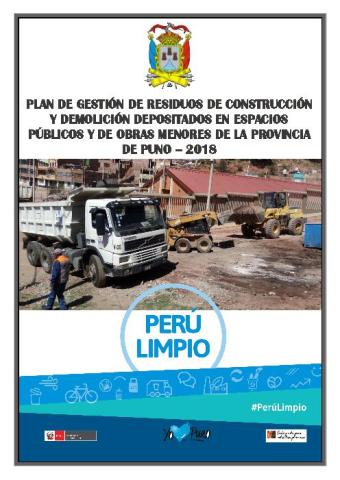PROPUESTA "PLAN DE GESTIÓN DE RESIDUOS DE CONSTRUCCIÓN Y DEMOLICIÓN DEPOSITADOS EN ESPACIOS PÚBLICOS Y DE OBRAS MENORES DE LA PROVINCIA DE PUNO – 2018"