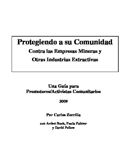 Protegiendo a su comunidad contra las empresas mineras y otras industrias extractivas. Una guía para promotores/activistas comunitarios.